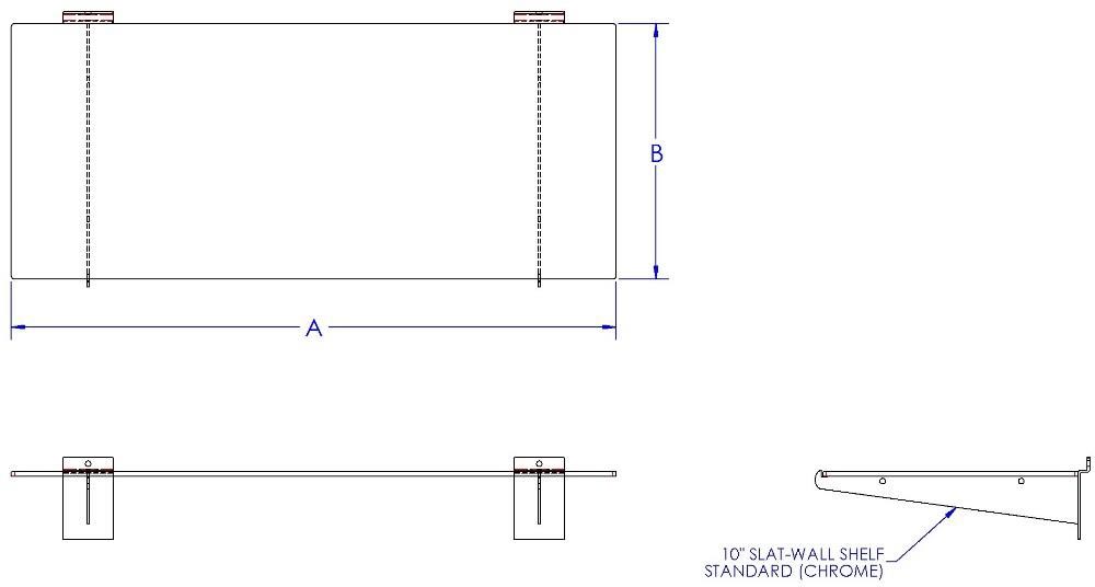 Slatwall Slatwall Slatwall Shelf Reference: 410002-3150 Description: Slatwall shelf with mounting brackets Product available in various sizes and/or material types. Contact sales for product availability or to request a quote. Browse Our Product Line Categories COVID-19 & SanitationConvenience StoreGrocery and RetailMerchandisersSecurity & Asset Protection
